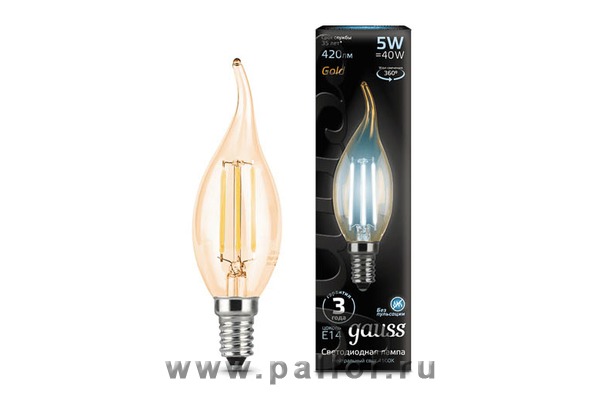| Лампа Gauss LED Filament Свеча на ветру E14 5W 420lm 4100K Golden 1/10/50 | 104801805 | 5 | (E14) | По запросу |