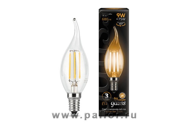 Описание Лампа Gauss LED Filament Свеча на ветру E14 9W 680lm 2700K 1/10/50