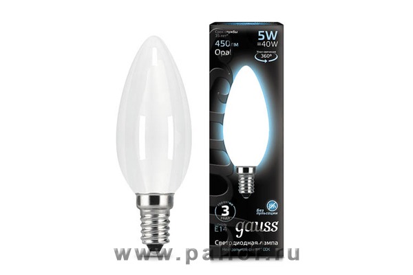| Лампа Gauss LED Filament Свеча OPAL E14 5W 450lm 4100К 1/10/50 | 103201205 | 5 | (E14) | По запросу |