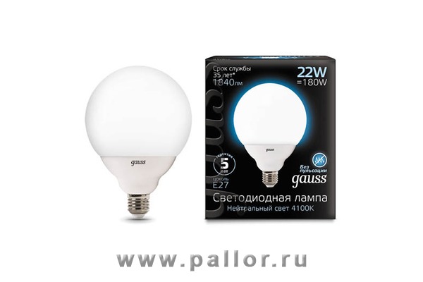 Описание Лампа Gauss LED G125 E27 22W 1840lm 4100K 1/24
