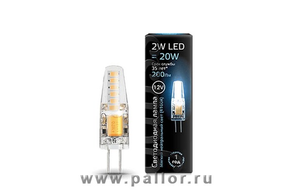 Описание Лампа Gauss LED G4 12V 2W 200lm 4100K силикон 1/20/200