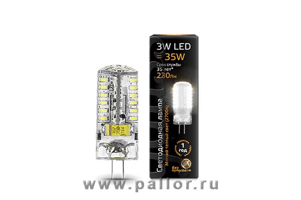 Описание Лампа Gauss LED G4 AC150-265V 3W 230lm 2700K силикон 1/20/200