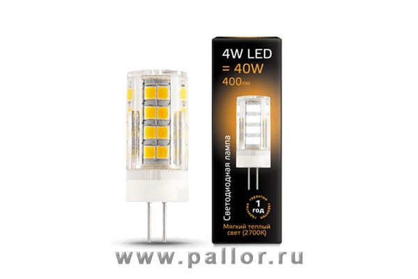 Описание Лампа Gauss LED G4 AC185-265V 4W 400lm2700K керамика 1/10/200