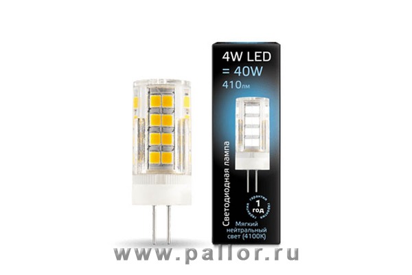Описание Лампа Gauss LED G4 AC185-265V 4W 410lm 4100K керамика 1/10/200