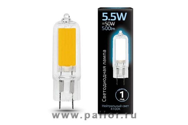 Описание Лампа Gauss LED G4 AC220-240V 5.5W 500lm 4100K Glass 1/10/200