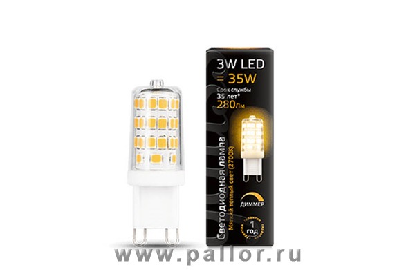 Описание Лампа Gauss LED G9 AC185-265V 3W 280lm 2700K 1/20/200 диммируемая