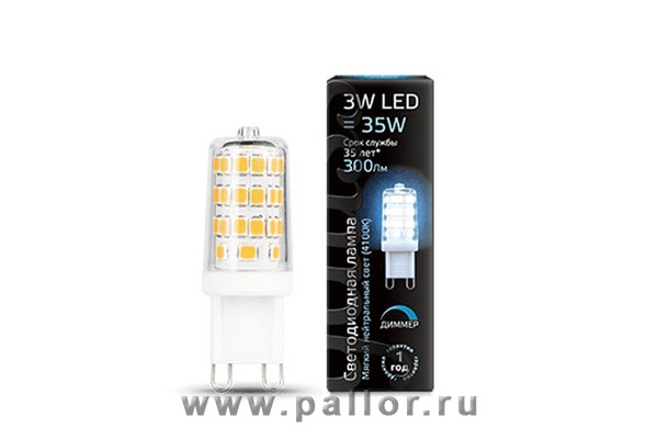 Описание Лампа Gauss LED G9 AC185-265V 3W 300lm 4100K 1/20/200 диммируемая