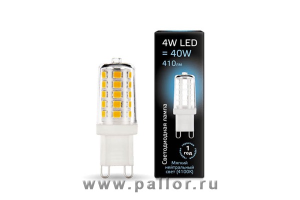 Описание Лампа Gauss LED G9 AC185-265V 4W 410lm 4100K керамика 1/10/200