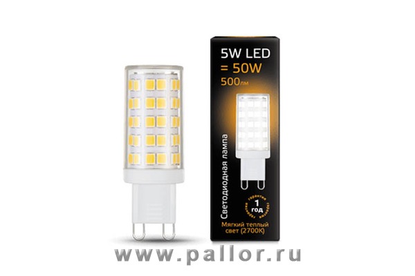 Описание Лампа Gauss LED G9 AC185-265V 5W 500lm 2700K керамика 1/10/200