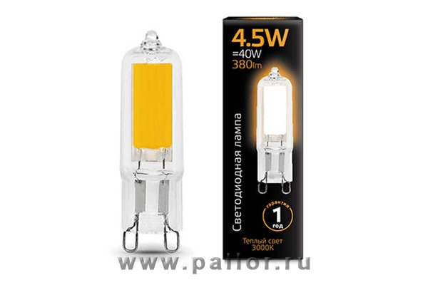 Описание Лампа Gauss LED G9 AC220-240V 4.5W 380lm3000K Glass 1/10/200