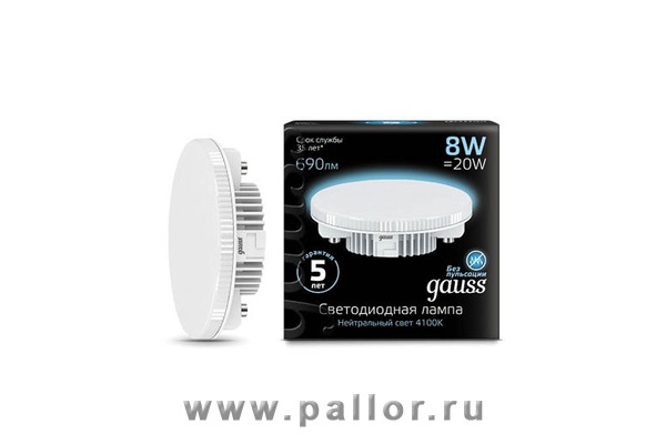 Описание Лампа Gauss LED GX53 8W 690lm 4100K 1/10/100