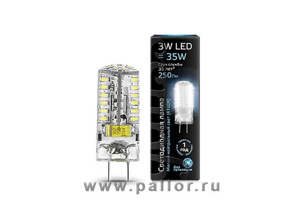 Описание Лампа Gauss LED GY6.35 AC150-265V 3W 240lm 4100K силикон 1/20/200