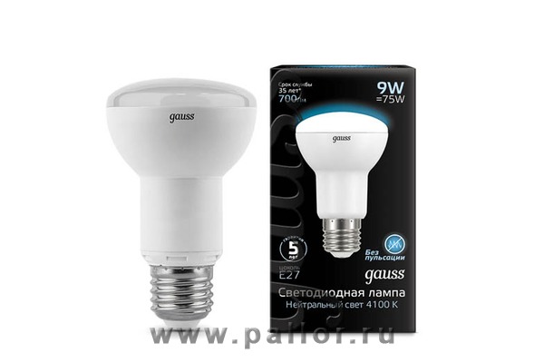 Описание Лампа Gauss LED R63 E27 9W 700lm 4100K 1/10/50