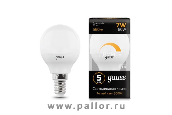 Описание Лампа Gauss LED Шар E14 6.5W 520lm 3000K 1/10/50