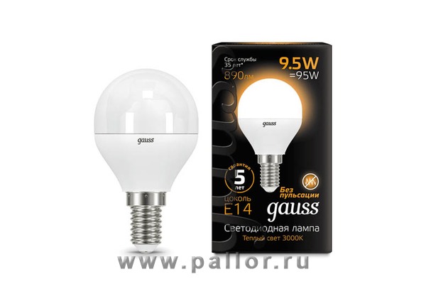 Описание Лампа Gauss LED Шар E14 9.5W 890lm 3000K 1/10/50
