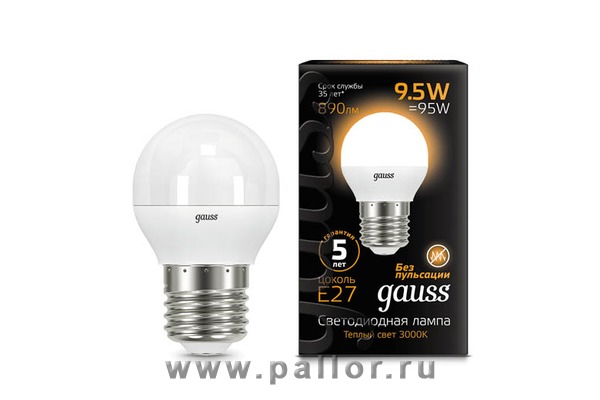 Описание Лампа Gauss LED Шар E27 9.5W 890lm 3000K 1/10/50