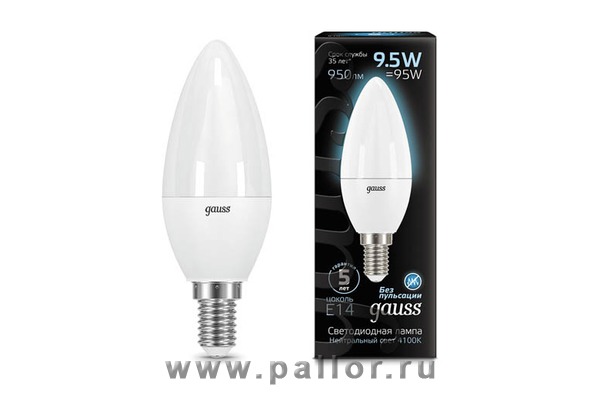 Описание Лампа Gauss LED Свеча E14 9.5W 950lm 4100К 1/10/50