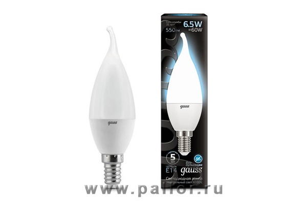 | Лампа Gauss LED Свеча на ветру E14 6.5W 550lm 4100K 1/10/50 | 104101207 | 6.5 | (E14) | По запросу |