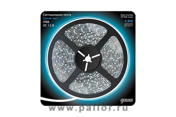 Описание Лента LED 2835/60-SMD 4.8W 12V DC синий IP66 (блистер 5м)