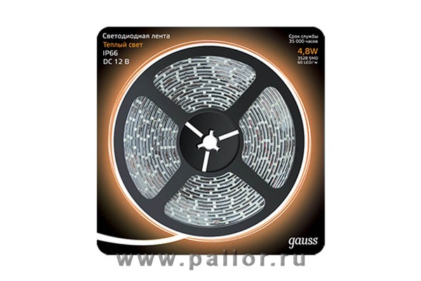Описание Лента LED 2835/60-SMD 4.8W 12V DC теплый белый IP66 (блистер 5м)
