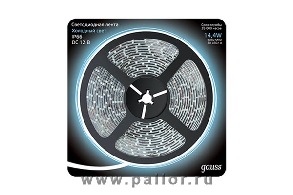 Описание Лента LED 5050/60-SMD 14.4W 12V DC холодный белый IP66 (блистер 5м) 1/50