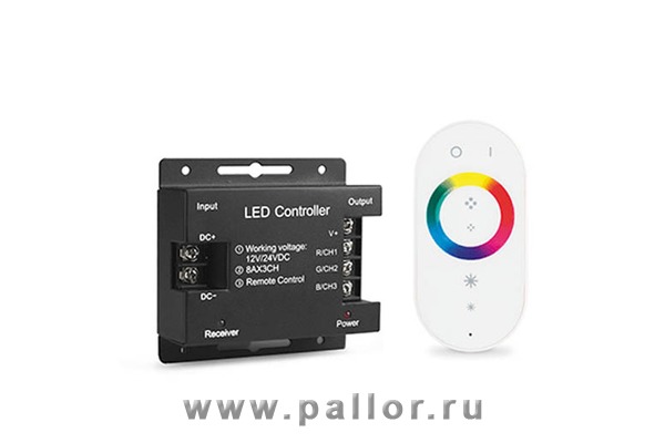 Описание Контроллер для RGB 288W 24А с сенсорным пультом управления цветом (белый)