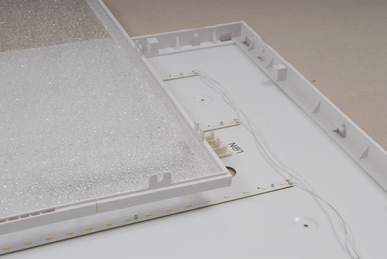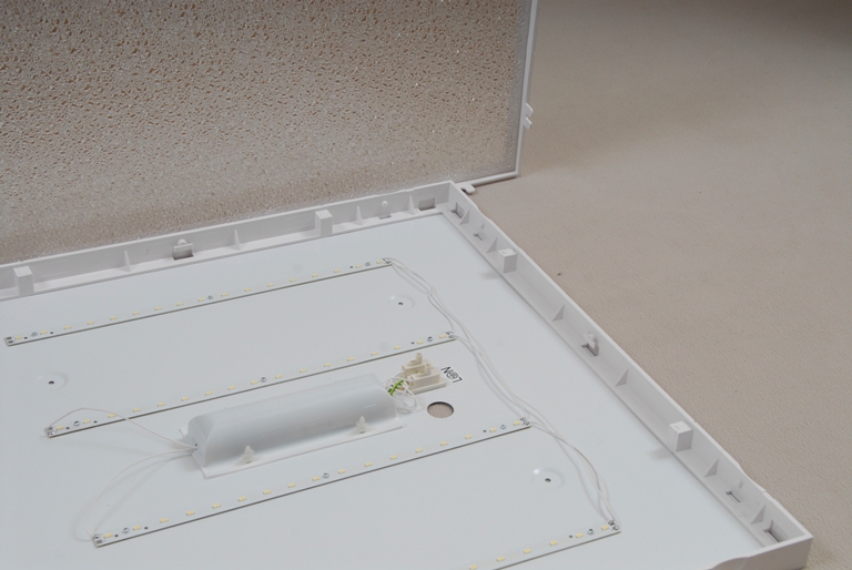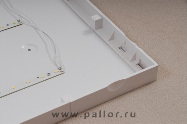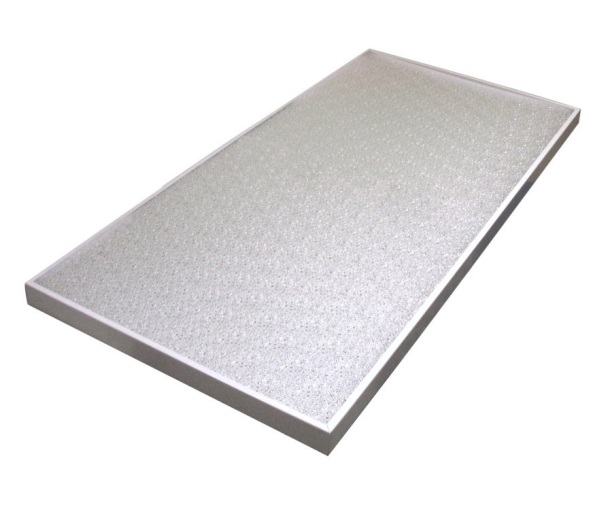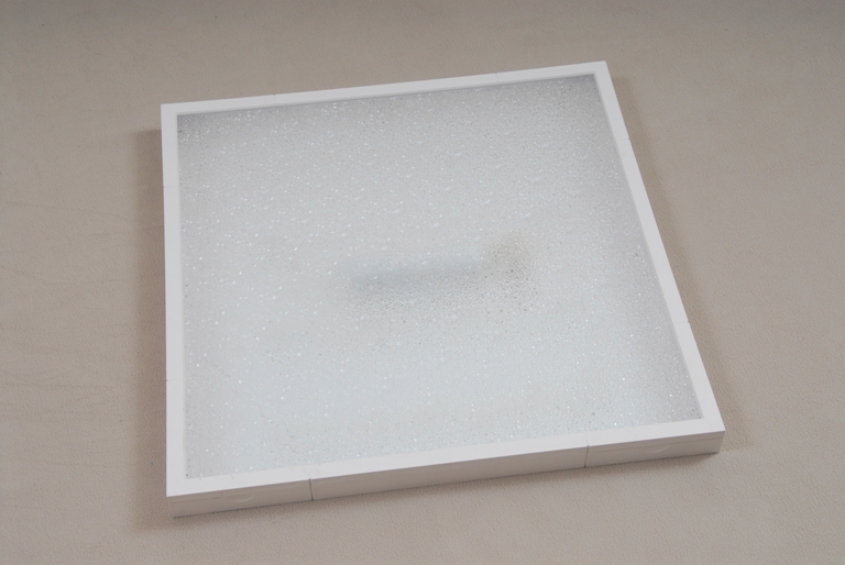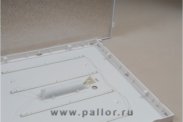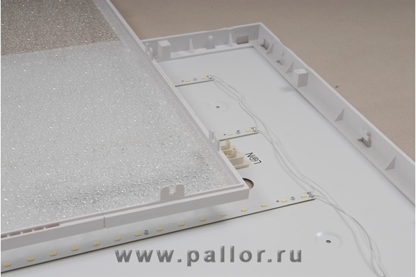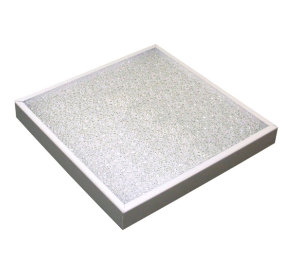 Оптическая часть - рассеиватель текстурированный (колотый лед). Выполнен из оптического ударопрочного поликарбоната в пластиковой рамке. Устанавливается в корпус с помощью скрытых защелок.