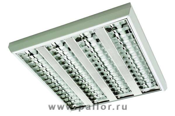 Оптическая часть - зеркальный растровый отражатель в форме двойной параболы, параболические поперечные отражатели закрыты с обратной стороны, между отражателями растра - зеркальные перфорированные вставки.