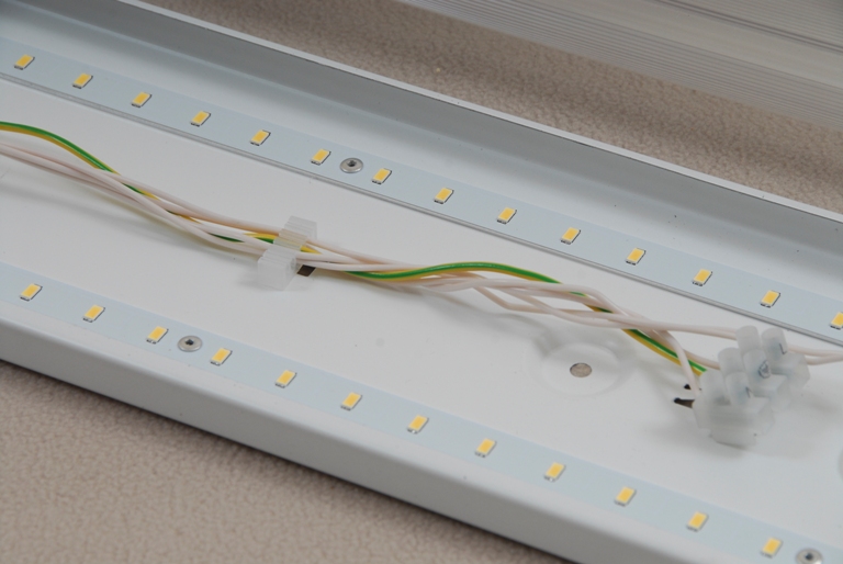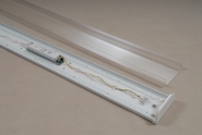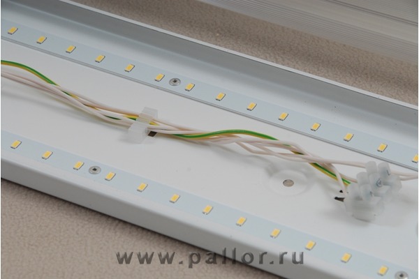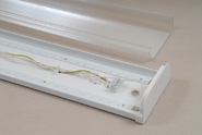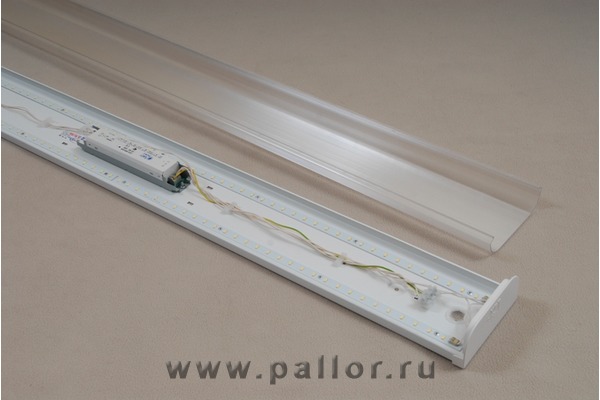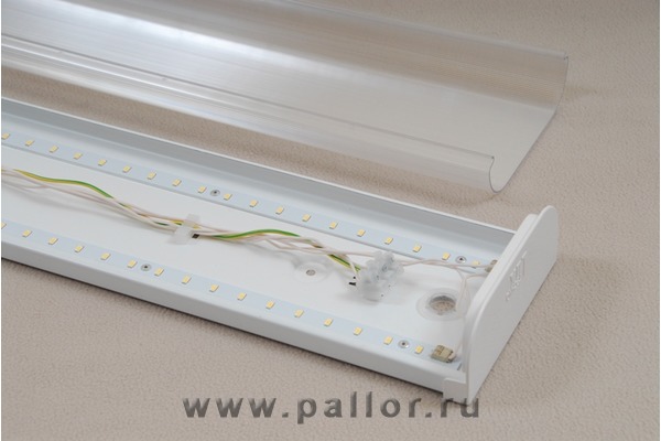 Оптическая часть - рассеиватель выполнен из прозрачного светостабилизированного полистирола, (серия OL - опаловый полистирол). Торцевые крышки из белого АВС-пластика.