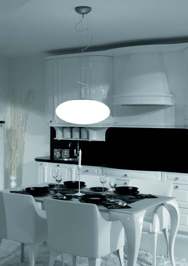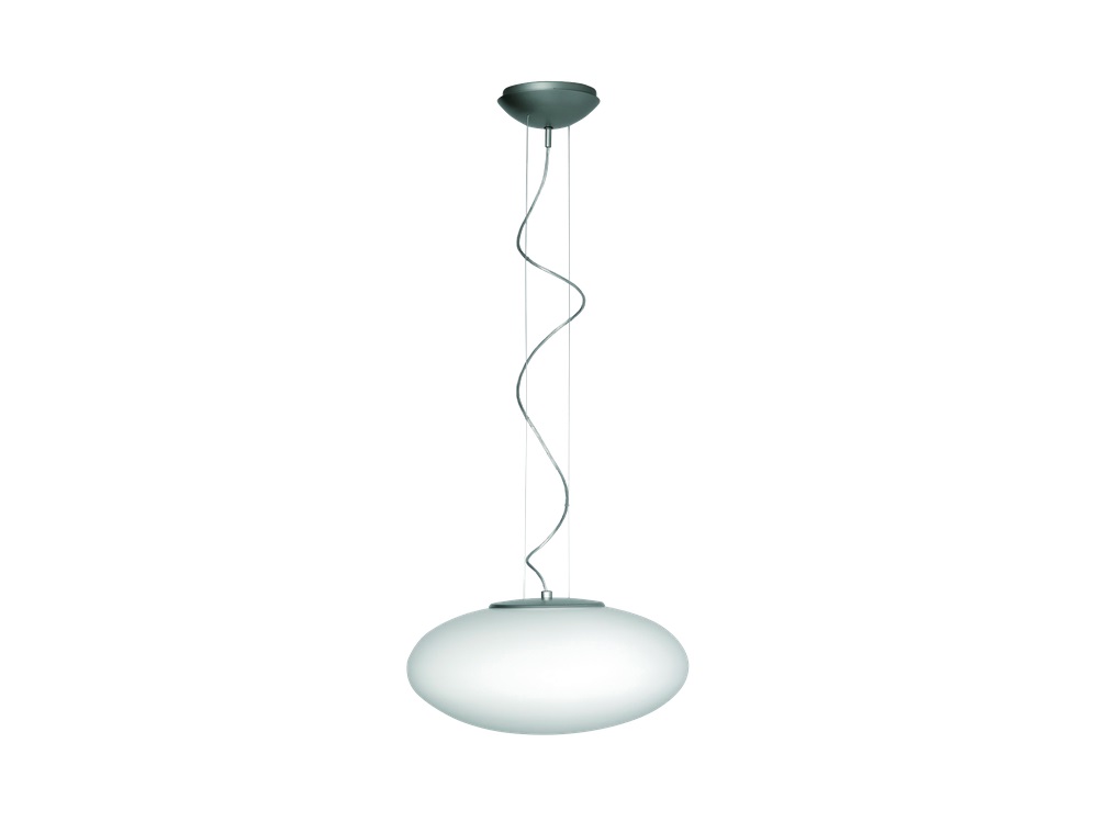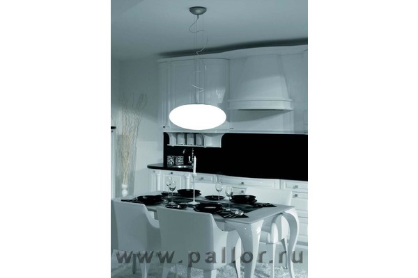 Оптическая часть - выпуклый опаловый рассеиватель-диффузор из трёхслойного выдувного стекла ручной работы. Плафон устанавливается на арматуру. Потолочная чашка из металла, покрытого краской цвета SL «серый металлик» (по шкале RAL 9006). Под заказ возможно окрашивание в цвет NI «никель».