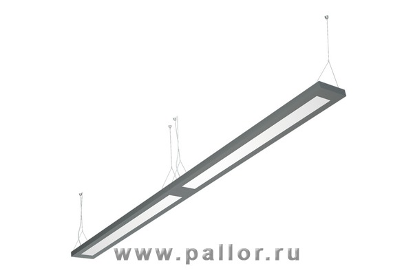 Подвесная модульная система. Устанавливается на поверхность потолка с помощью тросовых подвесов (подвесы входят в комплект светильника).