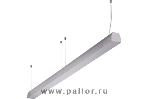 Подвесная модульная система. Устанавливается на потолки с помощью тросовых подвесов длиной до 2 метров (поставляются в комплекте со светильником). Установка в световую линию шириной 10 см. Возможно соединение светильников в линию под углом 90 градусов.