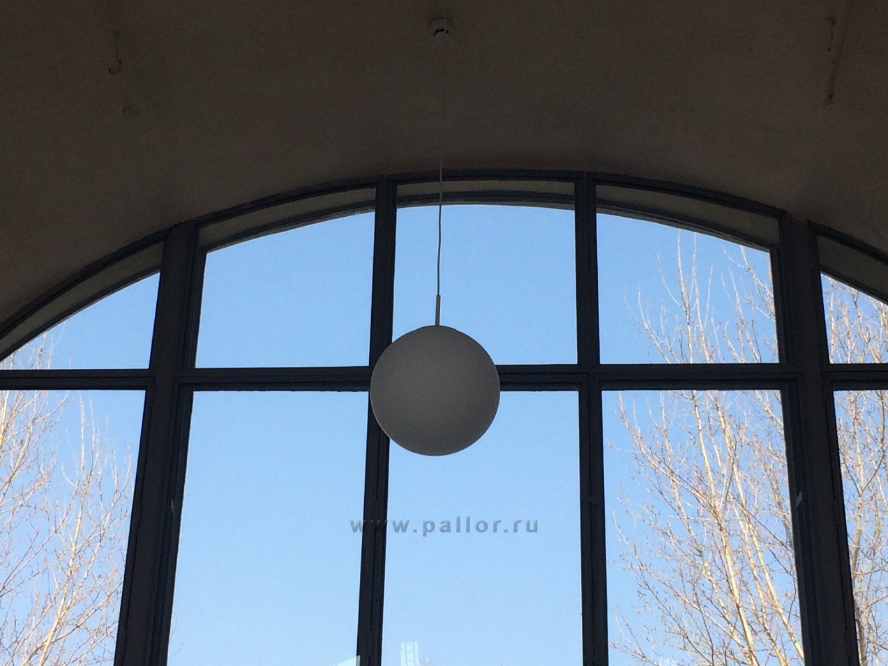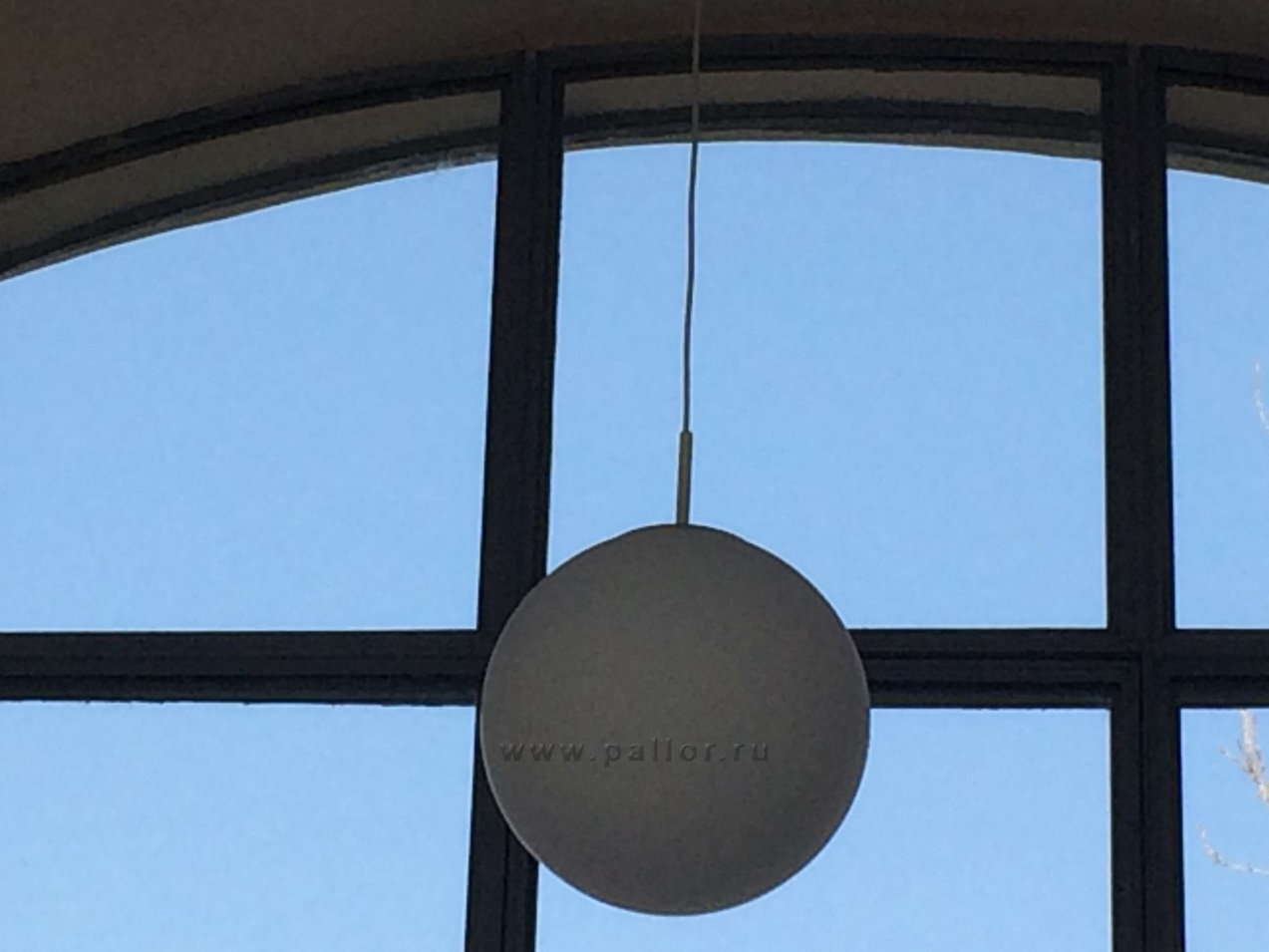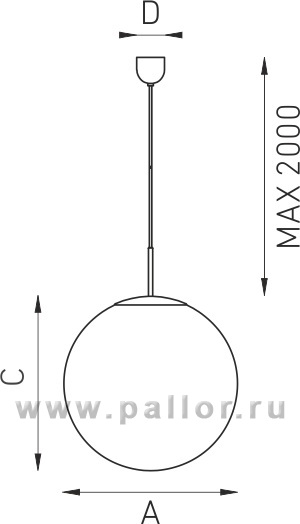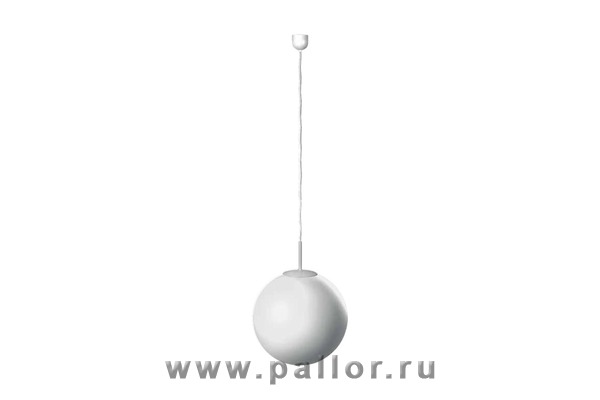 Подвесной стеклянный светильник диффузного света в форме шара. Предназначен для установки на потолок с помощью подвеса. Подвес в виде самостоятельного провода белого или черного цвета, скрепленного стальным литцендратом (минимум 300 мм).