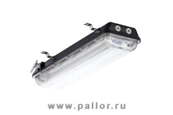 Взрывозащищенный светильник под люминесцентные лампы. Монтируется на ровную поверхность потолка или стены с помощью кронштейнов. Возможно крепление на опору (трубу).