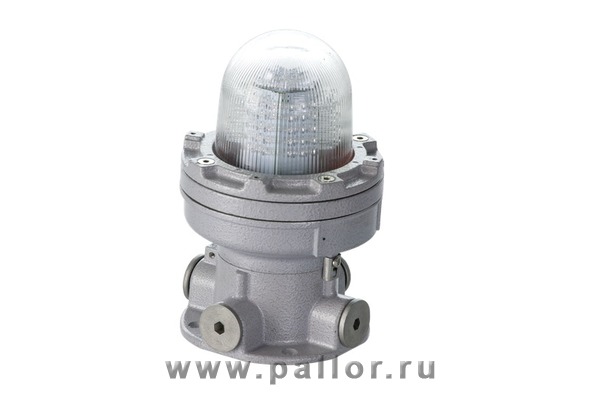 Взрывозащищенный светодиодный светосигнальный светильник. Монтируется на ровную горизонтальную поверхность с помощью четырех болтов. Также возможно использование для установки соединительной коробки.
