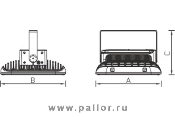 Накладной светодиодный промышленный светильник со степенью защиты IP66. Предназначен для монтажа непосредственно на потолок в помещении или на улице под навесом, крепежный элемент (лира) идет в комплекте со светильником. Угол наклона прибора регулируется в диапазоне от 0 до 45°. Установка на стену или консоль возможна с помощью поворотных кронштейнов (заказываются отдельно).