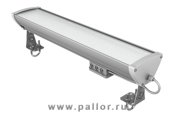 Промышленный светодиодный светильник с возможностью настенного и потолочного монтажа. Предусмотрено размещение на подвесах.