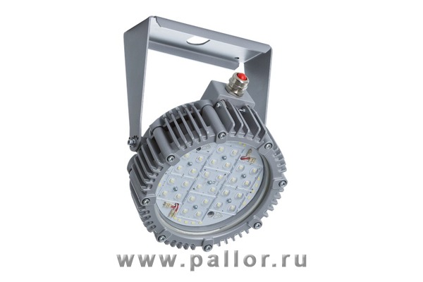 Взрывозащищенный светодиодный светильник. Монтируется на поверхность потолка или стены с помощью универсальной поворотной скобы. Крепится на трубу с помощью взрывозащищенного кабельного ввода или с помощью поворотной скобы, навинчивая ее на трубу. Возможно крепление на крюк.