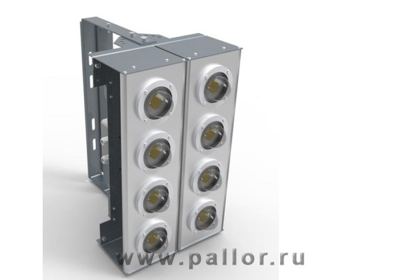 Мощный светодиодный прожектор серии ПСО для освещения больших площадей. Аналоги светильников с лампами ДНАТ 600 Вт. Устанавливается на поверхность с помощью монтажной скобы, регулируется угол наклона поворотным кронштейном.