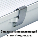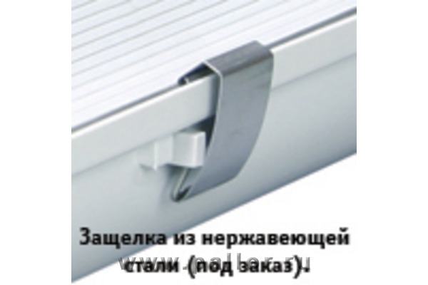Оптическая часть: рассеиватель из поликарбоната (PC). Крепление к корпусу с помощью защелок из полиамида, защелки из нержавеющей стали - под заказ.