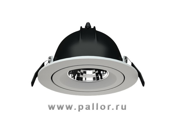 Светодиодный светильник направленного света типа Downlight с поворотной оптической частью. Предназначен для установки в потолки типа Армстронг и гипсокартонные потолки путём встраиваемого монтажа. Угол наклона оптической части регулируется в уже установленном в потолок светильнике.