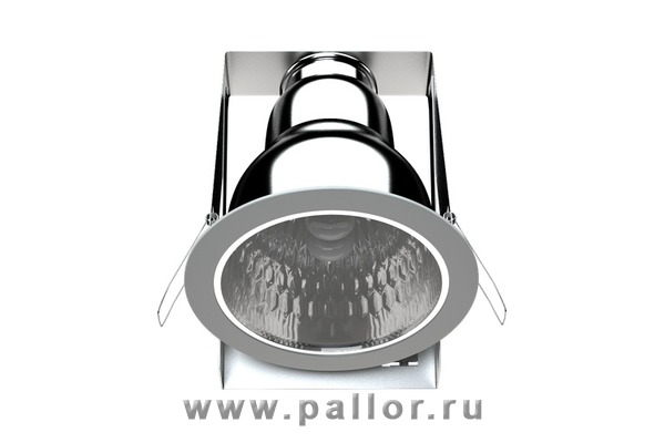 Оптическая часть: отражатель из зеркального анодированного алюминия в кольце, окрашенном в цвет металлик. Крепится на двух стойках. Степень защиты IP20.