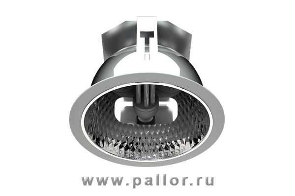 Встраиваемый светильник серии Downlight под КЛЛ с цоколем Е27. Предназначен для установки в подвесные потолки типа «Армстронг» или в гипсокартонные потолки. Светильник может устанавливаться в потолки "Грильято" с помощью рамки Грильято SL (рамка должна быть обязательно подвешена через проушины к несущему потолку).