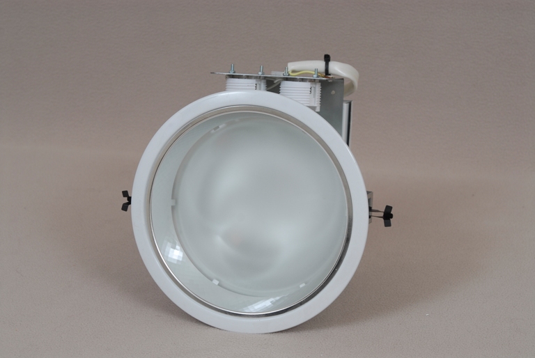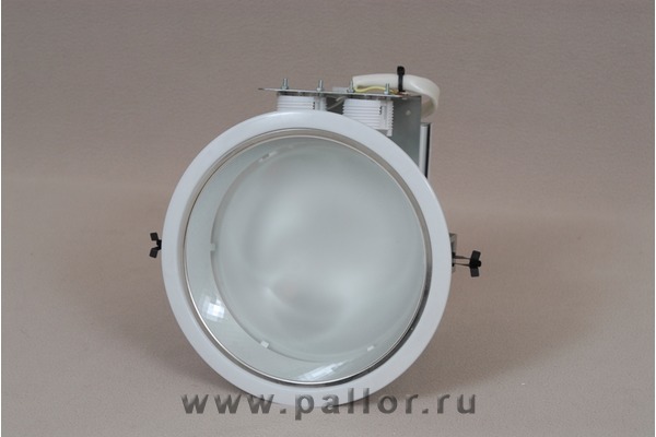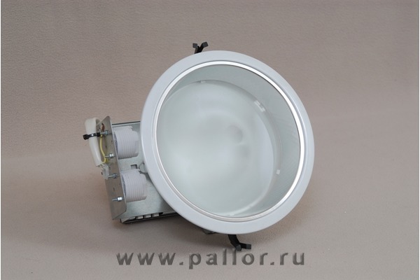 Оптическая часть - отражатель из зеркального алюминия, рассеиватель в виде утопленного мозаичного стекла. Белое декоративное кольцо. Горизонтальное расположение ламп.