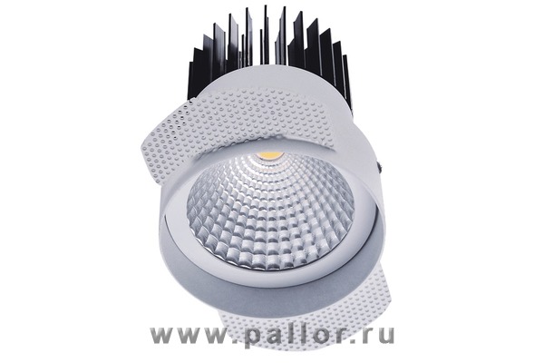 Светодиодный светильник направленного света типа Downlight с поворотной оптической частью и степенью защиты IP20. Предназначен для встраиваемого монтажа. В гипсокартонные потолки устанавливается с помощью клипс.