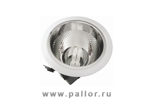 Оптическая часть - рассеиватель отсутствует, отражатель из зеркального алюминия. Стальное кольцо с напылением. Светильник может комплектоваться поверхностным опаловым рассеивателем, обеспечивающим степень защиты IP 44. Вертикальное расположение ламп.