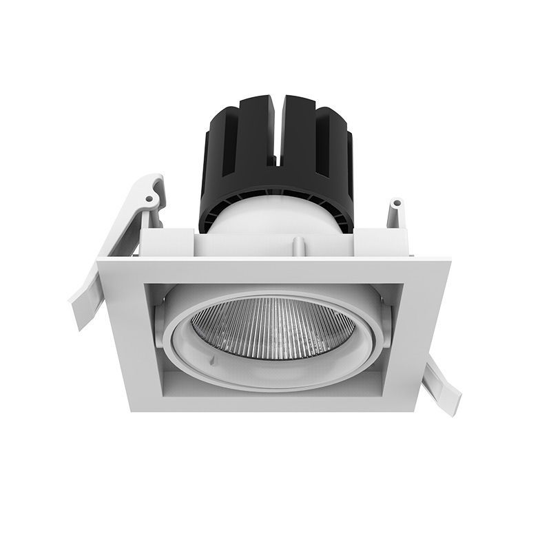 Встраиваемый светодиодный светильник карданного типа для монтажа в потолки из гипсокартона, реечные и натяжные потолки (для всех - прижимная системакрепления). Монтажные размеры 140х140 мм. Возможно соединение в линию и в поворотные конструкции с помощью дополнительных аксессуаров (см. таблицу модификаций).