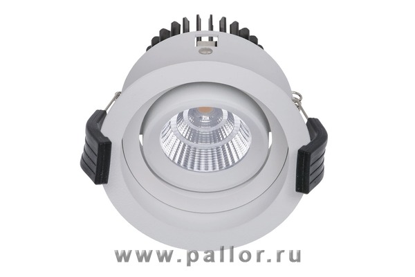 Светодиодный светильник направленного света типа Downlight с поворотной оптической частью и степенью защиты IP20. Предназначен для встраиваемого монтажа.