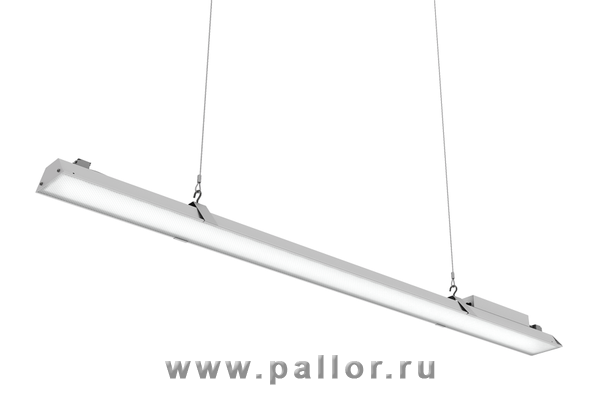 Подвесной LED светильник с возможностью монтажа в единую линию без промежутков. Размещается на регулируемом тросовом подвесе.