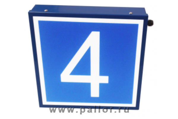 Корпус металлический синего цвета. На лицевой панели размещается изображение (номер дома, название улицы и т.д.), надпись входит в стоимость.